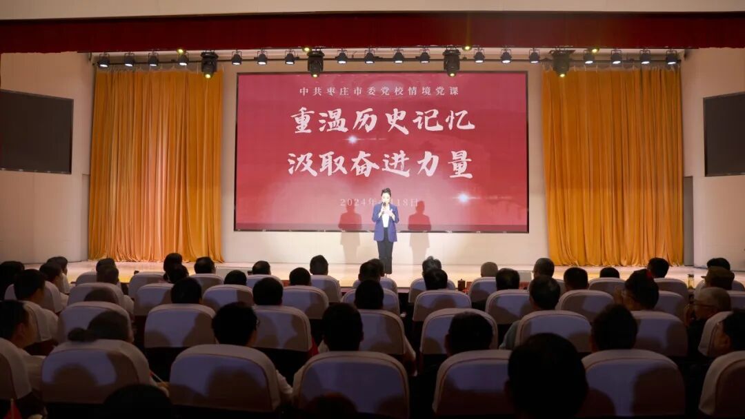此次情境党课由科级干部进修班、县级干部进修班、中青年干部培训班学员及我校部分青年教师出演,利用课余时间共同打造,枣庄市艺术剧院和峄城区融媒体中心协助举办。党课分别以“播火人”“跨越时空来看你”“铁道荣光”为主题,融情于景、寓景于情,为大家生动再现了“中兴公司”“台儿庄大战”和“铁道游击队”的历史点滴。学员们通过情景再现、角色扮演等形式倾情演绎,带领大家沉浸式走进枣庄历史长河,让历史人物动起来,让党性教育实起来,在穿越时空的“情景交融”中感悟历史,在“身临其境”的视听盛宴中感触枣庄这片革命老区、红色热土的光辉历史与精神底蕴。现场多次响起热烈掌声,情境党课得到了大家充分认可。