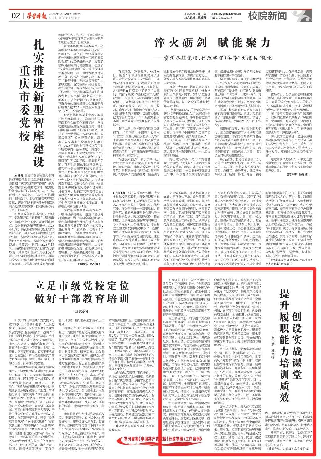 新修订的《中国共产党党校(行政学院)工作条例》提出,“全面提高履职能力,增强适应新时代中国特色社会主义事业发展要求、推进中国式现代化建设的本领”。山东省枣庄市委组织部、市委党校整合力量集中打造“决胜枣庄”实战练兵课堂培训模式,通过解构现实工作案例、搭建真实一线场景、推动教学与实践深度融合等提升干部履职能力。