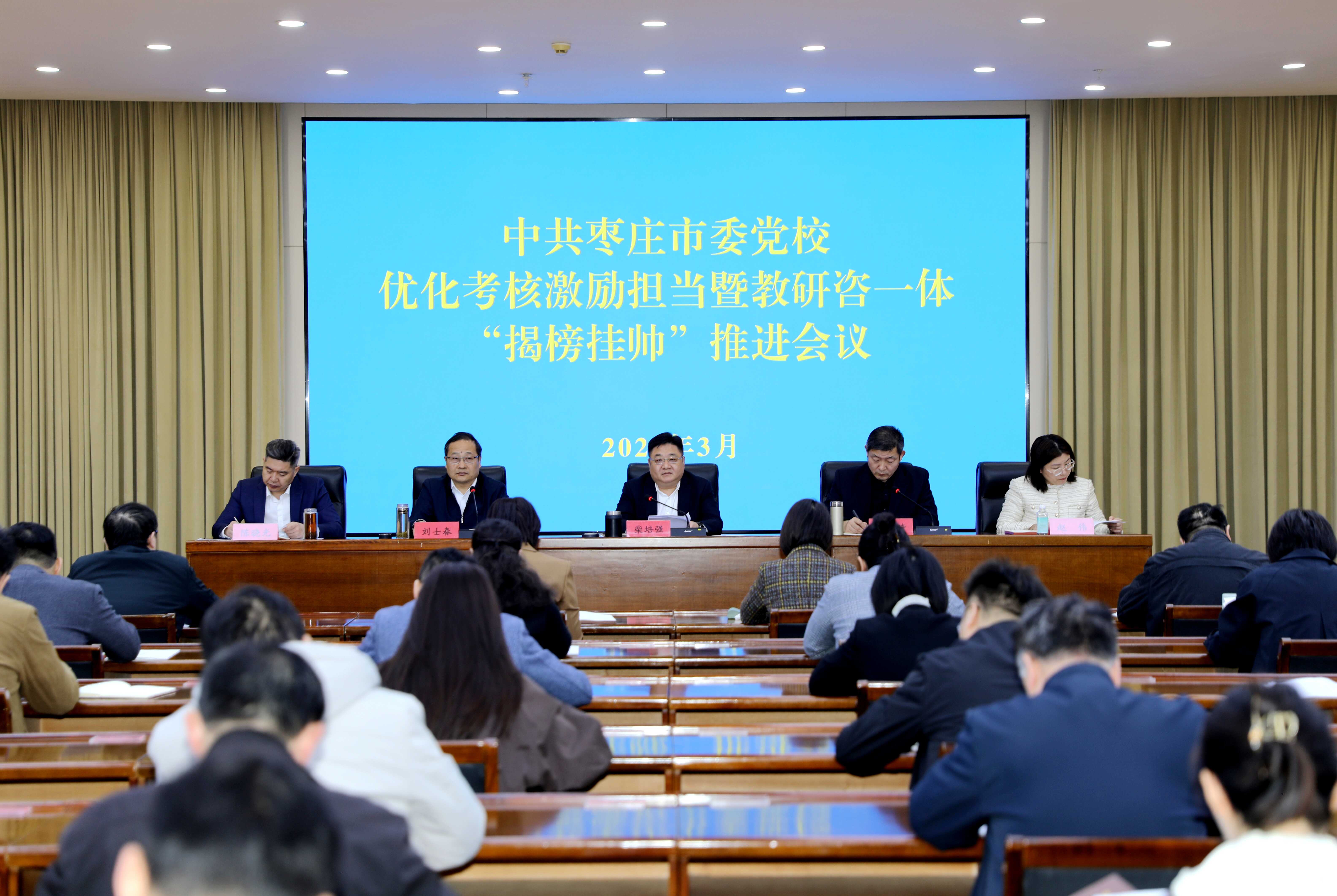 3月26日,市委党校召开优化考核激励担当暨教研咨一体“揭榜挂帅”推进会议。分管日常工作的副校长、校(院)委会主任柴培强出席会议并讲话。校(院)委班子成员、全体教职工参加会议。
